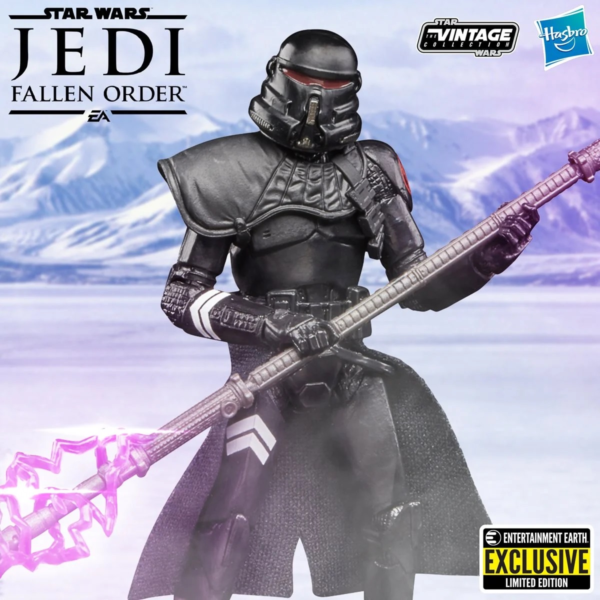 This awesome Star Wars The Vintage Collection Gaming Greats Electrostaff Purge Trooper Exclusive figure is 3.75 inches tall and is based on the game Star Wars Jedi: Fallen Order. This highly articulated trooper is dressed in black armor and includes an electrostaff pole with plastic effects to engage in combat with the Jedi or any who dare oppose the will of the Emperor.